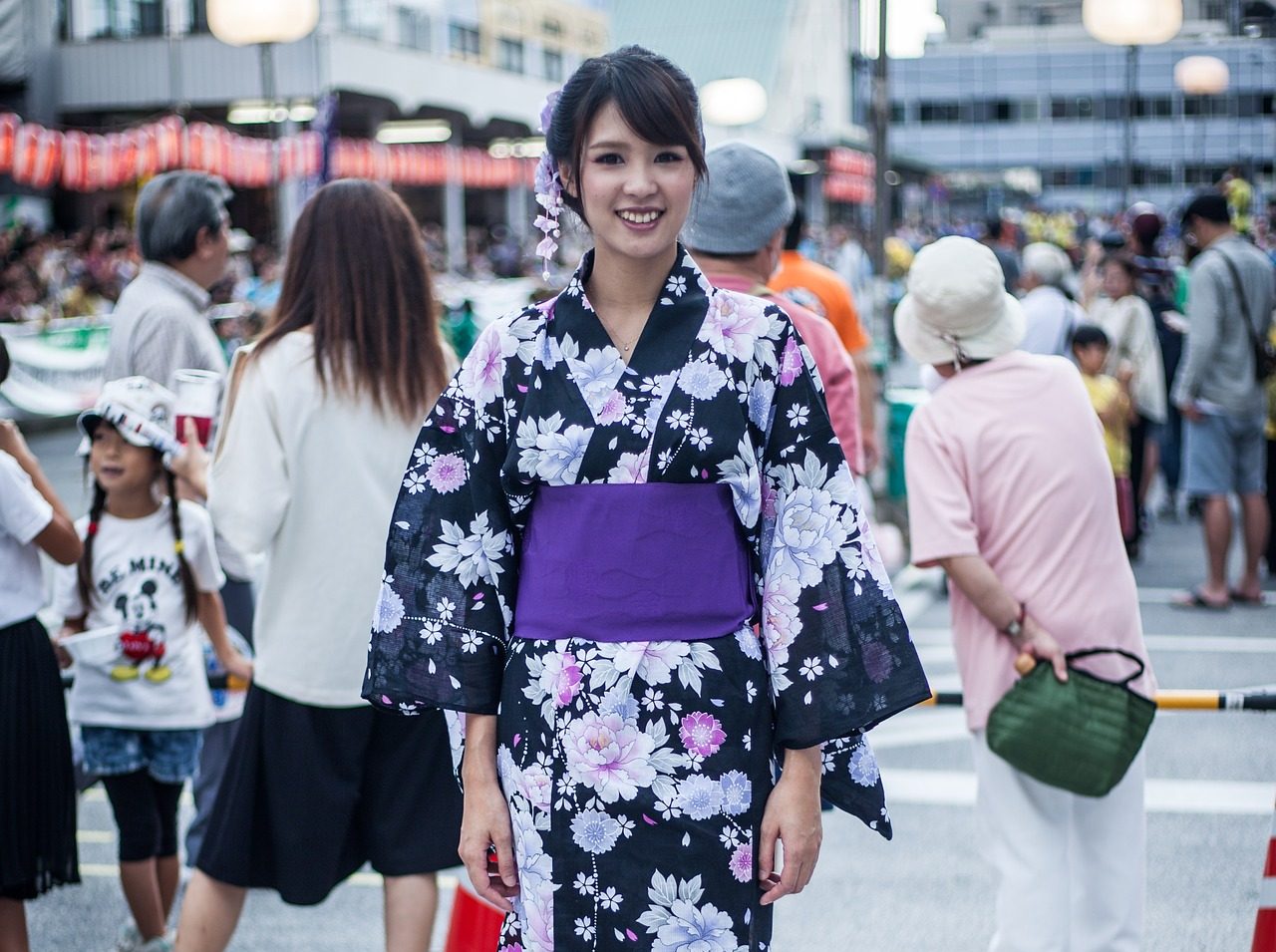 浴衣姿で外出するときも和風柄のがま口カードケースを片手に持てばお洒落です。