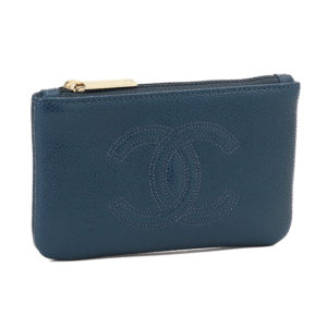 中央についたエンボス加工のシャネルマークが高級感あふれるコインケースです。